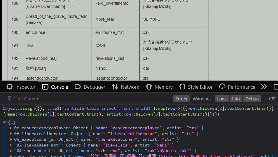 Life of a Leon: instead of downloading or purchasing an Umineko soundtrack that actually has proper tags, I am consulting a wiki page that maps the in-game song names to the ogg files in the game's BGM folder, scrubbing the DOM, and using it to bulk-tag the oggs in Foobar2000.