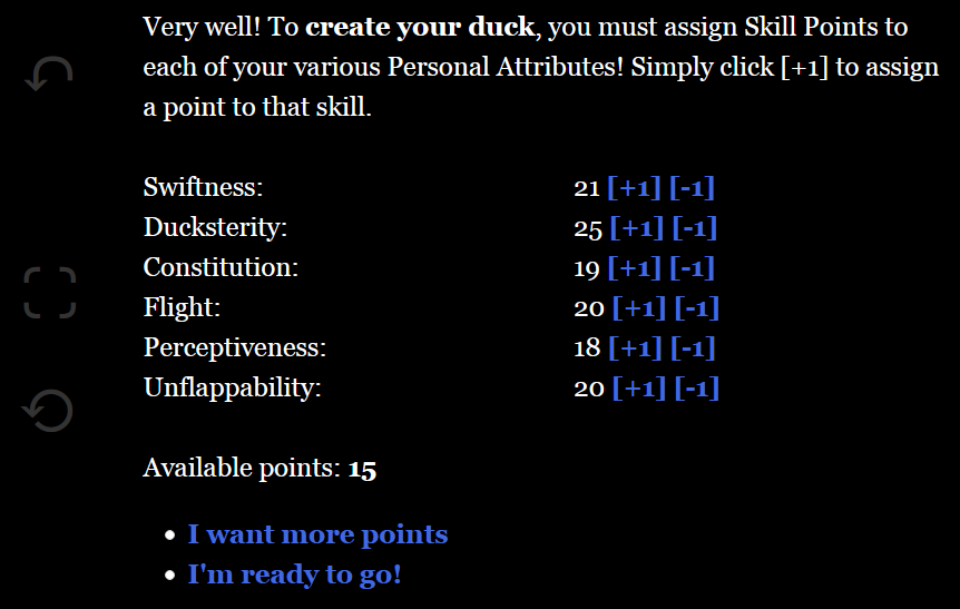 https://twine2.neocities.org/#introduction_example-stories – Alert to the Twine heads: I've added a pair of example stories to the Harlowe story format documentation that feature some common macros, as well as showing how you might implement a couple of complicated RPG-like features.