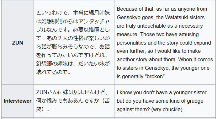 https://en.touhouwiki.net/wiki/Symposium_of_Post-mysticism/Interview – Regarding a trend in Touhou characters' power levels.