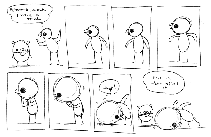 *quill-scratching noises in candlelit gloom* "Here it is. Ahem. "Once I'm done with you, your goose is gonna be on an episode of Cooking Disasters!" …No, wait, that implies *I'm* bad at fighting." *paper-scrunching noises*