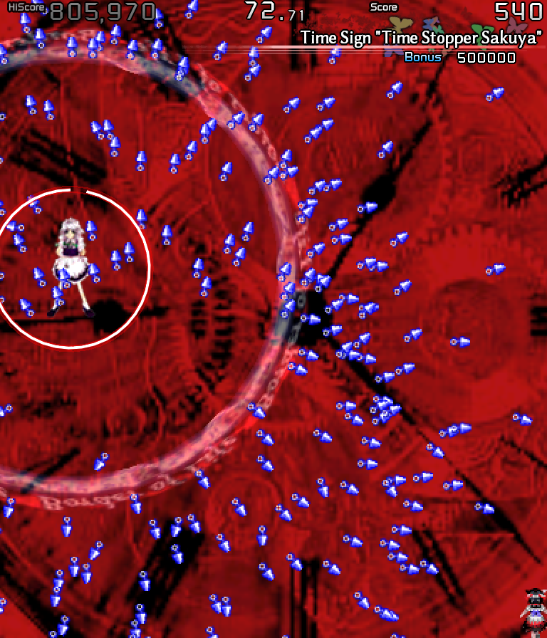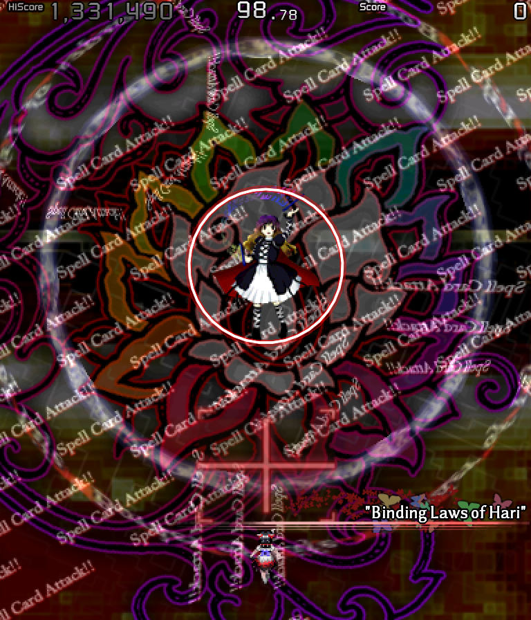 I checked my records and was baffled to find I'd perfect-cleared this card without using (Cheat Engine-supplied) bombs, but no, this spell card is just a "make your friends think you're good at danmaku" card. (Skip to 0:55 to see what I mean.)