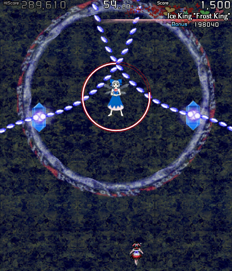 I appreciate ZUN's commitment to generally keeping characters' spell card backgrounds unchanged across the games. So, Sakuya will always have that cool badass low-resolution spinning clock, and Cirno will always be stuck with that terrible seam-riddled frost texture.