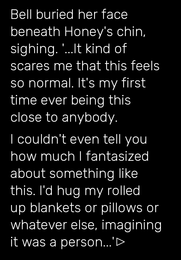 "That's just it. I never have nightmares anymore… but I never have good dreams, either. My dreams are permanently emotionally flat. I feel nothing inside them. No matter where I am, who's in the dream, what I need to do… I'm completely unmoved until I wake up…"