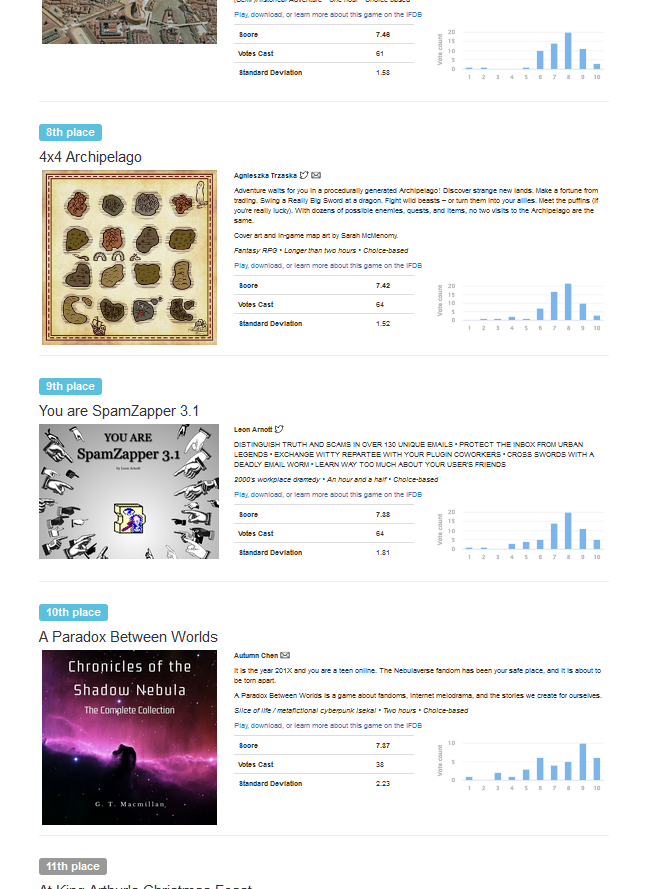https://ifcomp.org/comp/2021 – WAHOO! We did it! Top Ten! We're in the slightly blue-ish labels, baby! Let the good times roll!