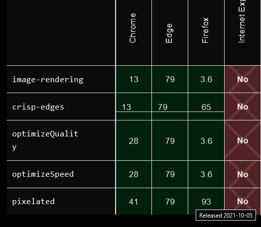 Just checked out how long it finally took Firefox to support image-rendering:pixelated, and, yup, it was less than 4 months ago.