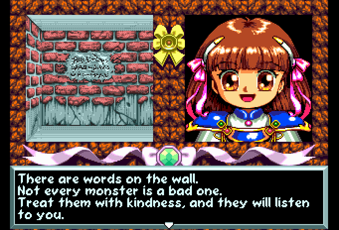 This game's CD music is a very different mix of the other versions' dungeon melody… Moodier and more self-serious.