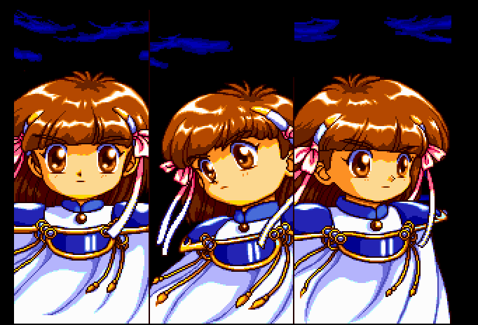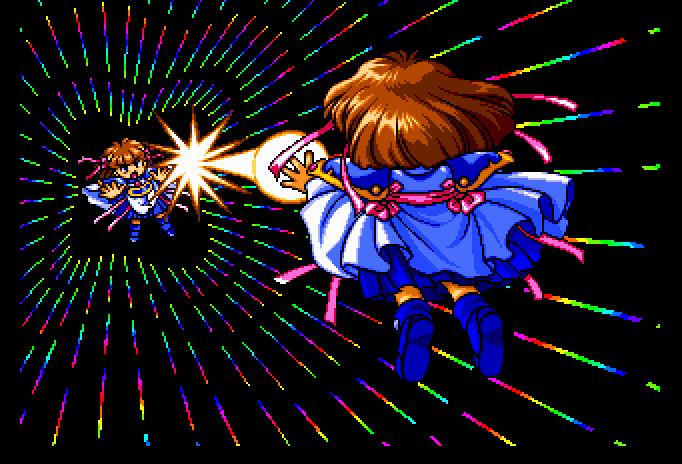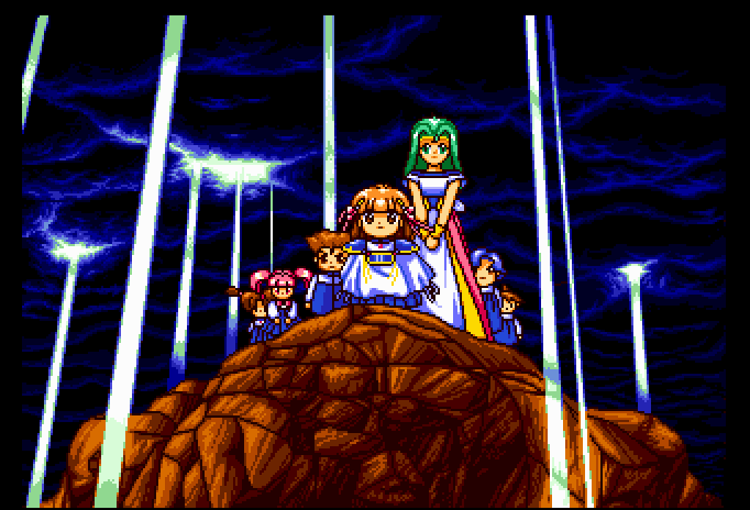 I love how this port (of the MSX original) uses the PC Engine's capabilities to add several long-winded cutscenes, but the attract mode is just three minutes of stirring music over a bunch of shots of Arle (age 6) in various badass poses.