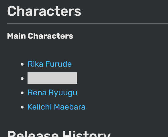 Trying to figure out a way to explain that the "hina" kanji in Hinamizawa is 雛, and that watanagashi heavily references the real-life nagashi-bina ritual 流し雛, without people figuring out that the only way I could possibly know this is because of Hina in Mountain Of Faith.