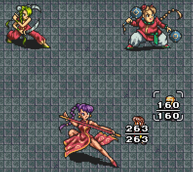 Comment about the battle system: I notice that not only is it grid-based, reminiscent of Ultima, but that it also has the "survive at 0 HP" thing, which I believe is also an Ultima-ism (Note: I only know about Ultima third-hand through Exile/Avernum for the Mac).