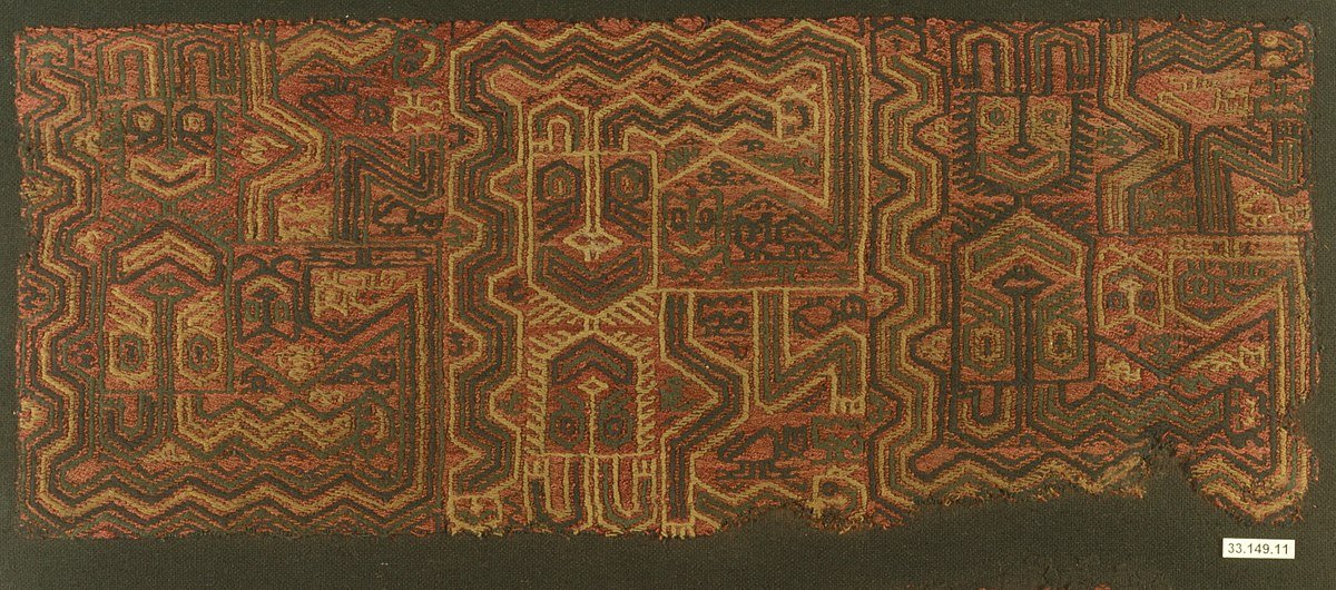 https://commons.wikimedia.org/wiki/File:Embroidered_Fragment_MET_DP18567.jpg – I actually really like the way these patterns fill space asymmetrically… the way the creatures' tails wrap around and frame the faces…