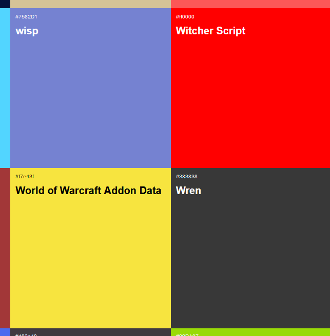 https://musca.github.io/github-lang-colors/ – Having fun looking up the programming languages GitHub recognises in its repository statistics.