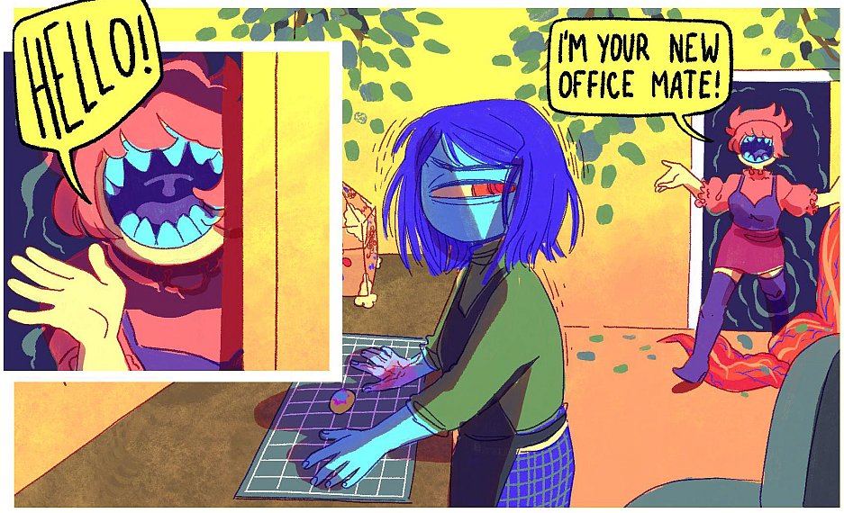 Destroy The Office (https://www.shortboxcomicsfair.com/shop/p/destroy-the-office-by-imogen-mangle) – Even shorter and simpler, but it's got a few funny moments and interesting colour, lighting and action. Good companion to the previous comic, I'd say.
