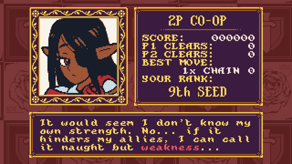 This stage, placed at this point in the mode, is batting way above a typical versus puzzle game's narrative design level.