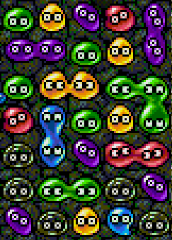 One final thing: I really do love the original Puyo sprites. They all have unique shapes and eyes by themselves AND when connected in every direction AND are nicely animated when falling. They're at least the second-best versus puzzle pieces, possibly even tied with Land Maker's.