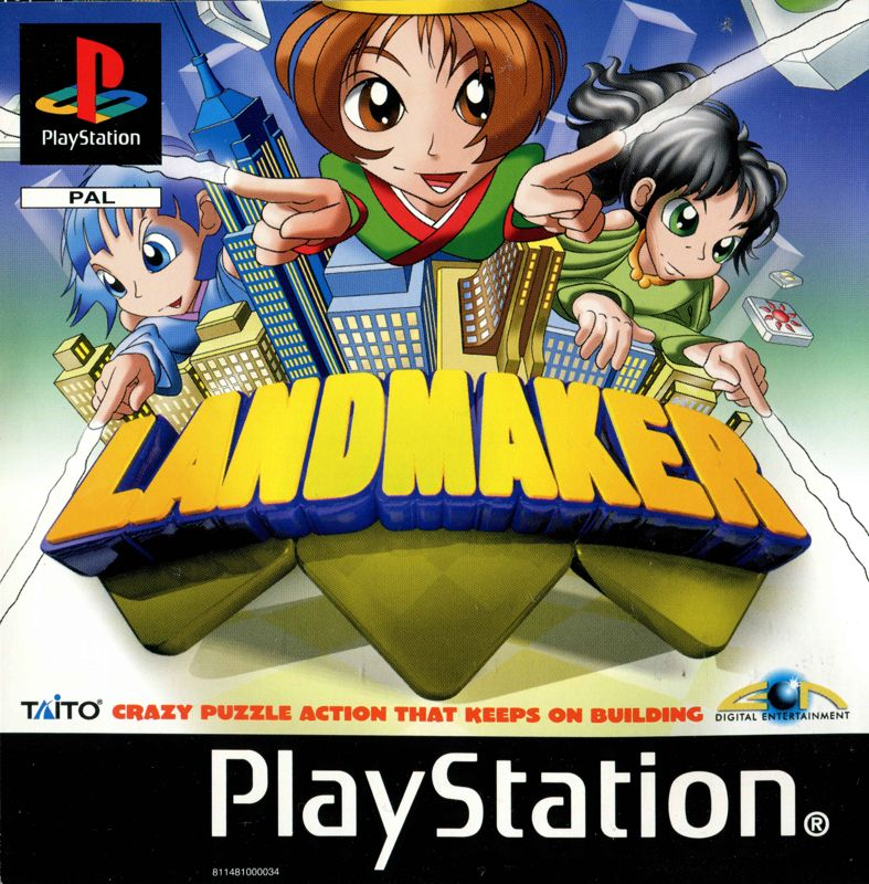 Surprisingly accurate and respectful Western boxart of Land Maker, capturing all five of its main gameplay features: