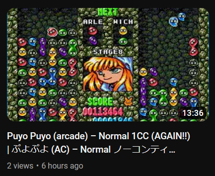 Just turned on a VOD of Puyo Puyo 1 and my brain instantly called it "the Hell Machine for batankyuuing all Arles" which definitely means I need to go for a walk
