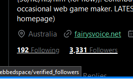 So I have some browser CSS that hides my own follower count because I got sick of seeing it every time I go to my profile to re-read my favs (←still calls likes "favs" in '23) but it suddenly broke today.