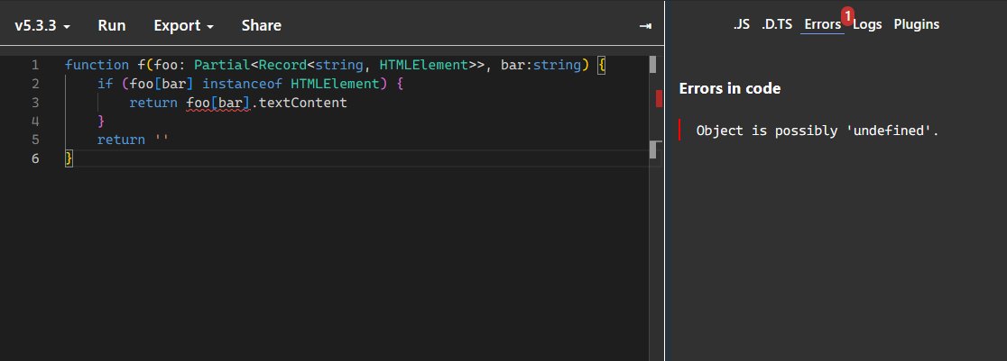 Ooh, look at me, I'm TypeScript Compiler, I can do control flow analysis on normal records, but not THIS record, because THIS record is PARTIAL, which means the indexed property could have fallen through a trapdoor between lines 2 and 3. Ooh! Oooh!!