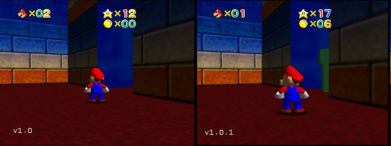 One thing I'd hoped for since 0.7 came true: the last area is Peach's Castle as shown in grayscale in the 1995 Ultra 64 patent. This to me is excellent focus of intent: B3313 is prototype SM64 as it exists in the collective imagination, conjured from what little evidence remains.