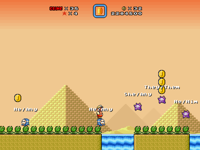 • Humour mostly hits well even if you haven't played even 1 of the… *checks list* …16 other SMBX worlds whose levels are being parodied in this game