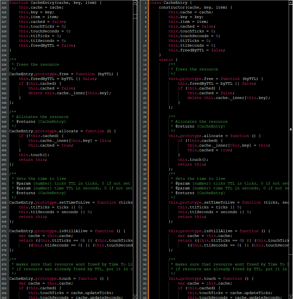 Some of you may wonder how difficult it is to port an aging late-00s Javascript codebase to the new, minty-fresh 2020's class syntax. Fortunately, it's pleasantly simple.