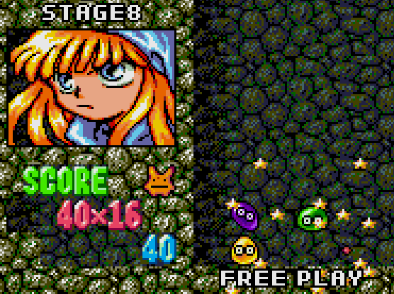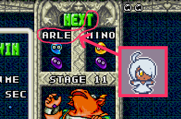 Today's Puyo 1 mystery: for every opponent, their puyos splatter like yours…… except the witch, whose puyos burst into stars. What gives? Did they give up implementing character-specific puyo splatter sprites after only this one?
