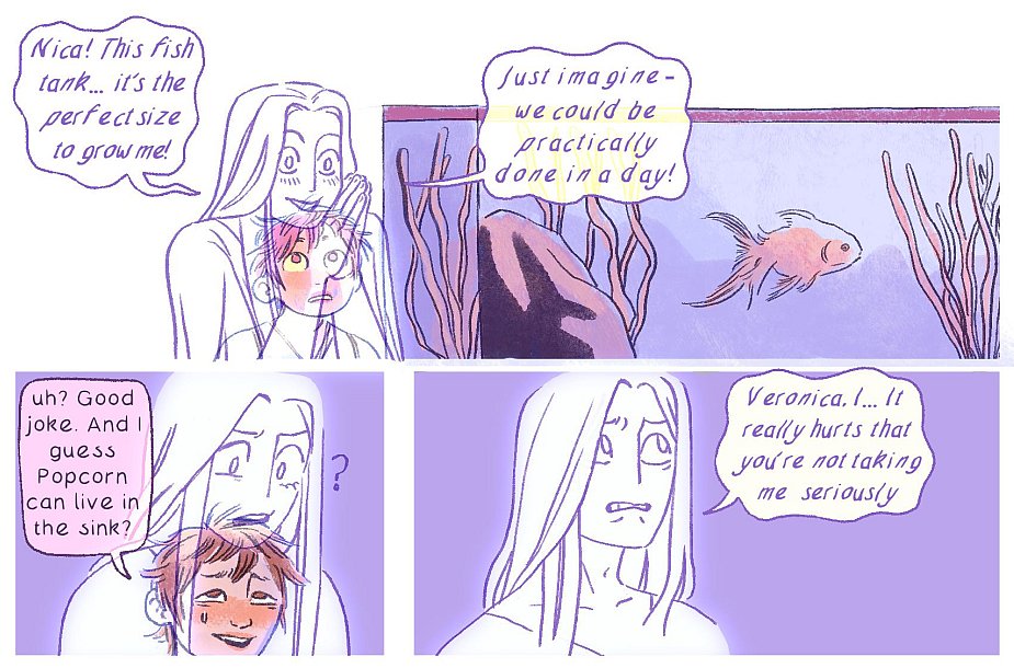 Ocean (https://www.shortboxcomicsfair.com/shop/p/ocean-by-lucie-bryon) – Initially rather silly slice-of-life comic that eases into a more down-to-earth, likeable stride. Has a nice full-circle ending.