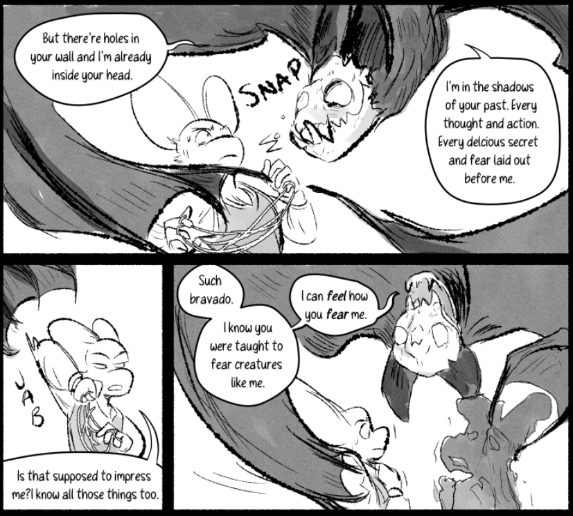 Aglæca (https://www.shortboxcomicsfair.com/shop-sq4wj/p/aglca-by-mohnfisch) – Another entry with an anticlimactic ending, this one still gets my nod for both great expressions and poses on very readable characters, and lovely pencil-shaded environments - the artist making the most of a not-exactly detailed art style.