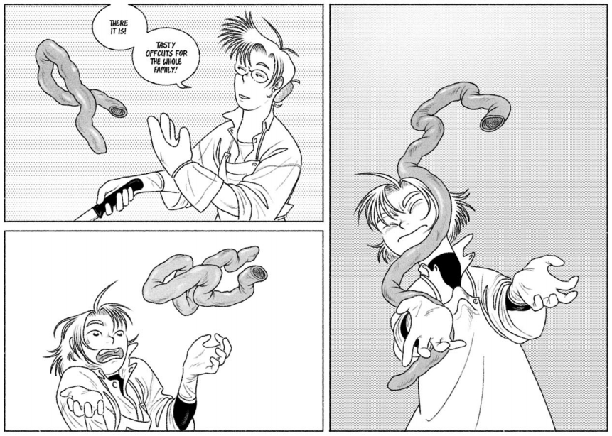 Leftovers (https://www.shortboxcomicsfair.com/shop-sq4wj/p/leftovers-by-luckycavity) – OK, this is a mess. Flow of events is often incomprehensible, and the panels frequently clash with each other for attention. Still, the strange premise and relationship amuses me a lot, and the panels in isolation are good.
