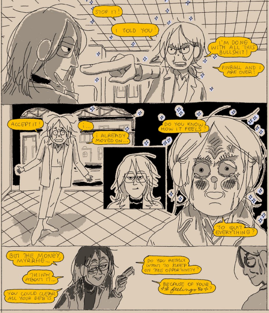 Pinball Wizard (https://www.shortboxcomicsfair.com/shop/p/pinball-wizard-by-pavina) – A wacky and quite expressive dark comedy with some legitimately hilarious moments. The hyper-anxious, constantly hyperventilating protagonist is a great foil for the schemers all around her.