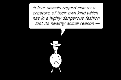 "I fear animals regard man as a creature of their own kind which has in a highly dangerous fashion lost its healthy animal reason - as the mad animal, as the laughing animal, as the weeping animal, as the unhappy animal."
